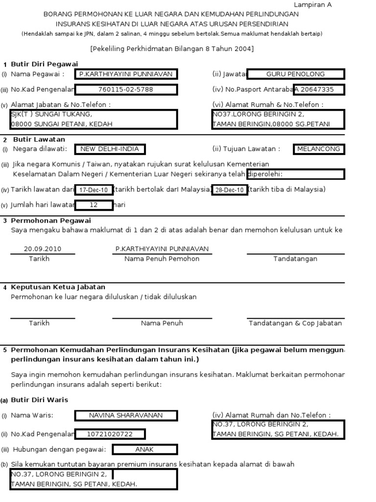 Borang Insuran Ke Luar Negara Pdf Pdf